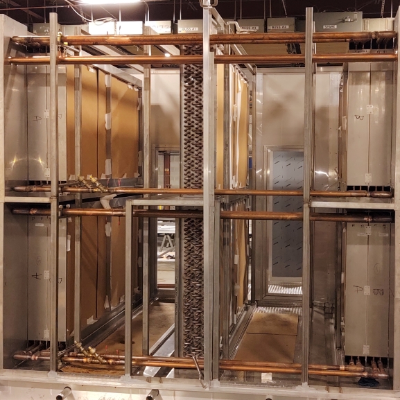 Wall & Roof Panels - Our custom AHU panels are manufactured in house and made to order for each project. The core material is polyurethane foam and we can build panels with most skin materials that come in sheet form. Our most popular skin options are stucco aluminum, smooth aluminum,304 stainless steel, and galvanized metal. Our panels exceed the requirements of NFPA 90A for flame and smoke spread limits. Custom AHU Rated Panel Letter.